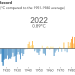 Secondo ERA5, la temperatura media annuale è stata di 0,3° C al di sopra del periodo di riferimento 1991-2020, che equivale a circa 1,2° C in più rispetto al periodo 1850 -1900, utilizzato come proxy per l’era preindustriale. Questo rende il 2022 l’ottavo anno consecutivo di temperature superiori di oltre 1° C rispetto al livello preindustriale. Inoltre, ogni mese estivo boreale durante il 2022 è stato almeno il terzo più caldo a livello globale.